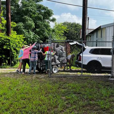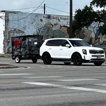 The ladies pushed the trailer from the back yard to the alley and hooked-up the trailer to the car. The mayor of Sinton offered her vehicle to tow the trailer.
